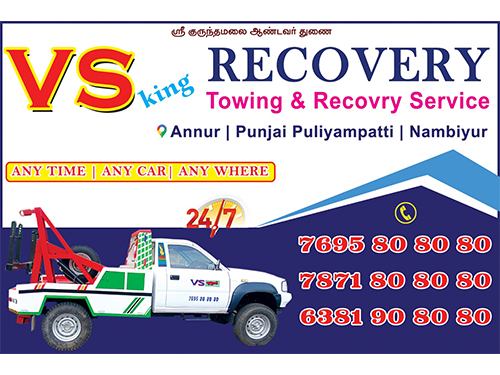detailsVS King Towing & Recovery Service best car towing and recovery services in tamilnadu at less cost and doing variety of services across all in tamilnadu.